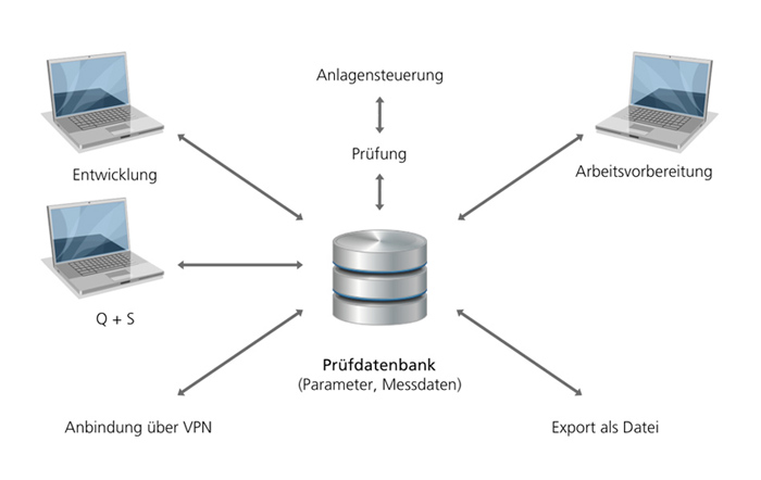 Vom einfachen Einzelplatz-Prüfsystem bis hin zu aufwändig vernetzten Systemen mit Anbindung an das Firmennetzwerk ist im Rahmen der b.sound Systemarchitektur alles möglich.